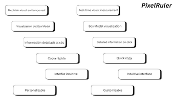 Med ett enkelt klick får användaren detaljerad information om elementets dimensioner, position, typografi, avstånd och kanter. Dessutom finns det möjlighet att kopiera dessa mått direkt till urklippet med ett högerklick. PixelRuler är ett utmärkt verktyg för utvecklare, testare och webdesigners som strävar efter precision i sina projekt.